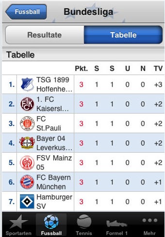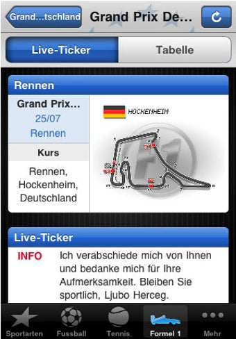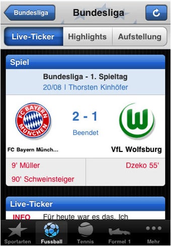 iPhone-App des Eurosport-Senders mit Sportnachrichten und Tabellenständen