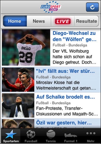 Mit dem kostenlosen iPhone-Client von Eurosport.com lesen Sportfans aktuelle Sportnachrichten auf dem Handy. Die App liefert Schlagzeilen und aktuelle Ergebnisse zu fast allen wichtigen Sportarten.